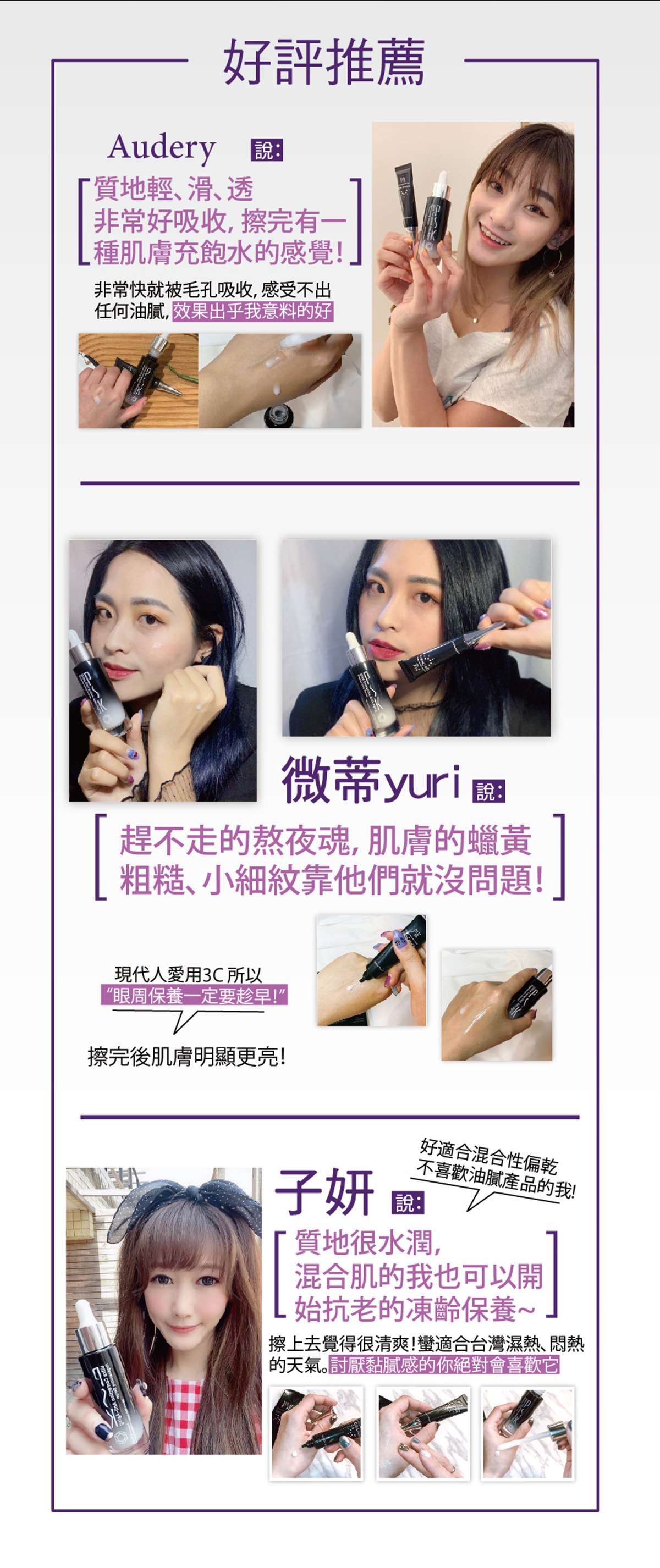 • 凝乳清爽質地易吸收,加強提亮眼周