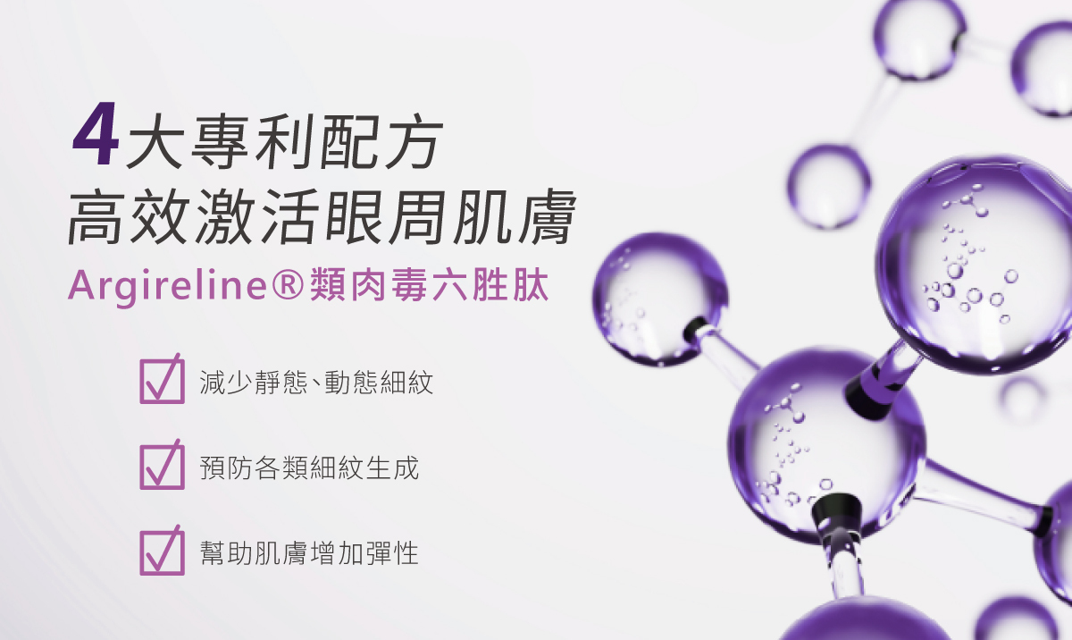 • 四大專利成分,全方位緊緻Q彈眼部細紋