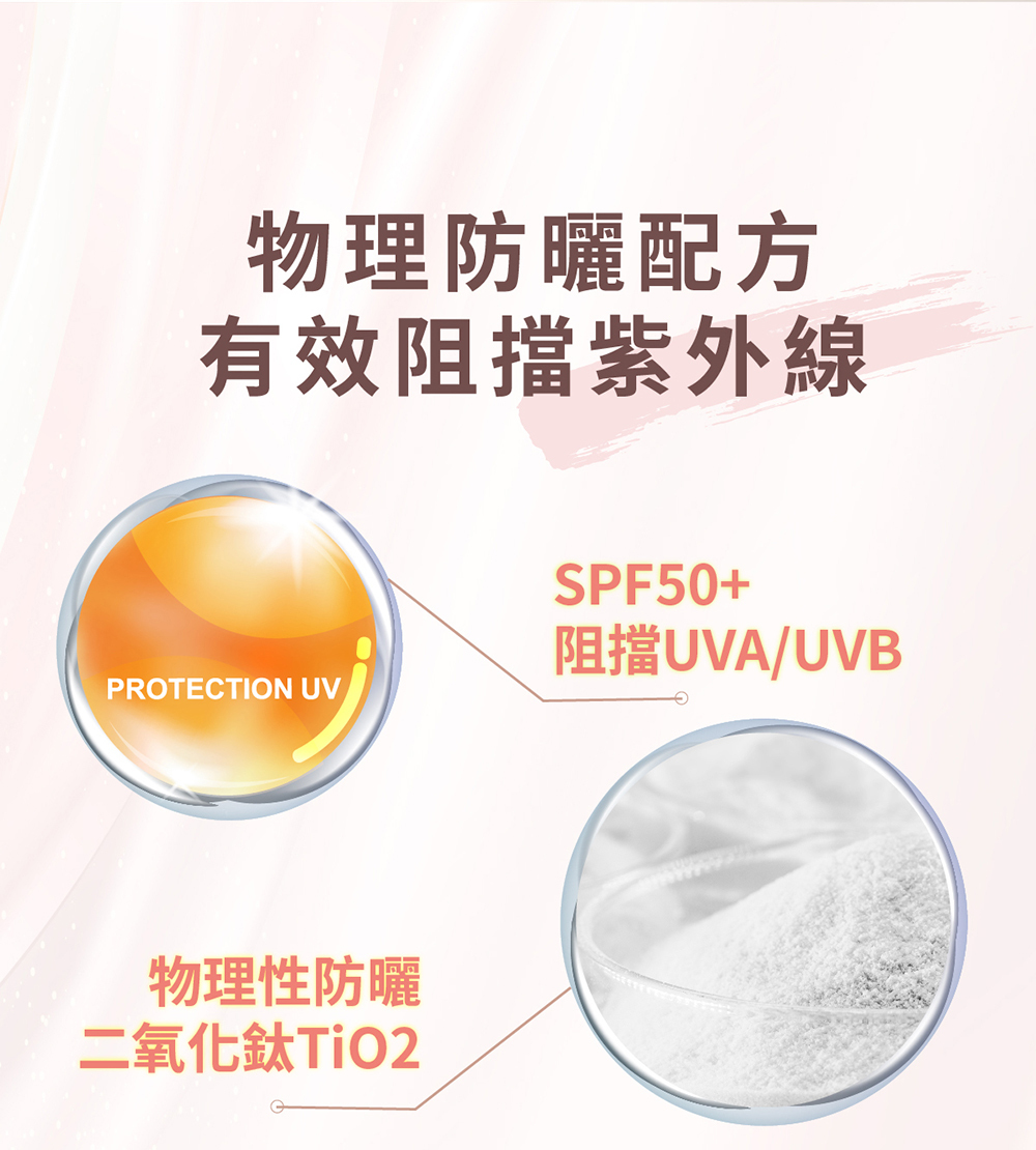 ◆純物理高係數防曬, UVA/UVB雙重保護
