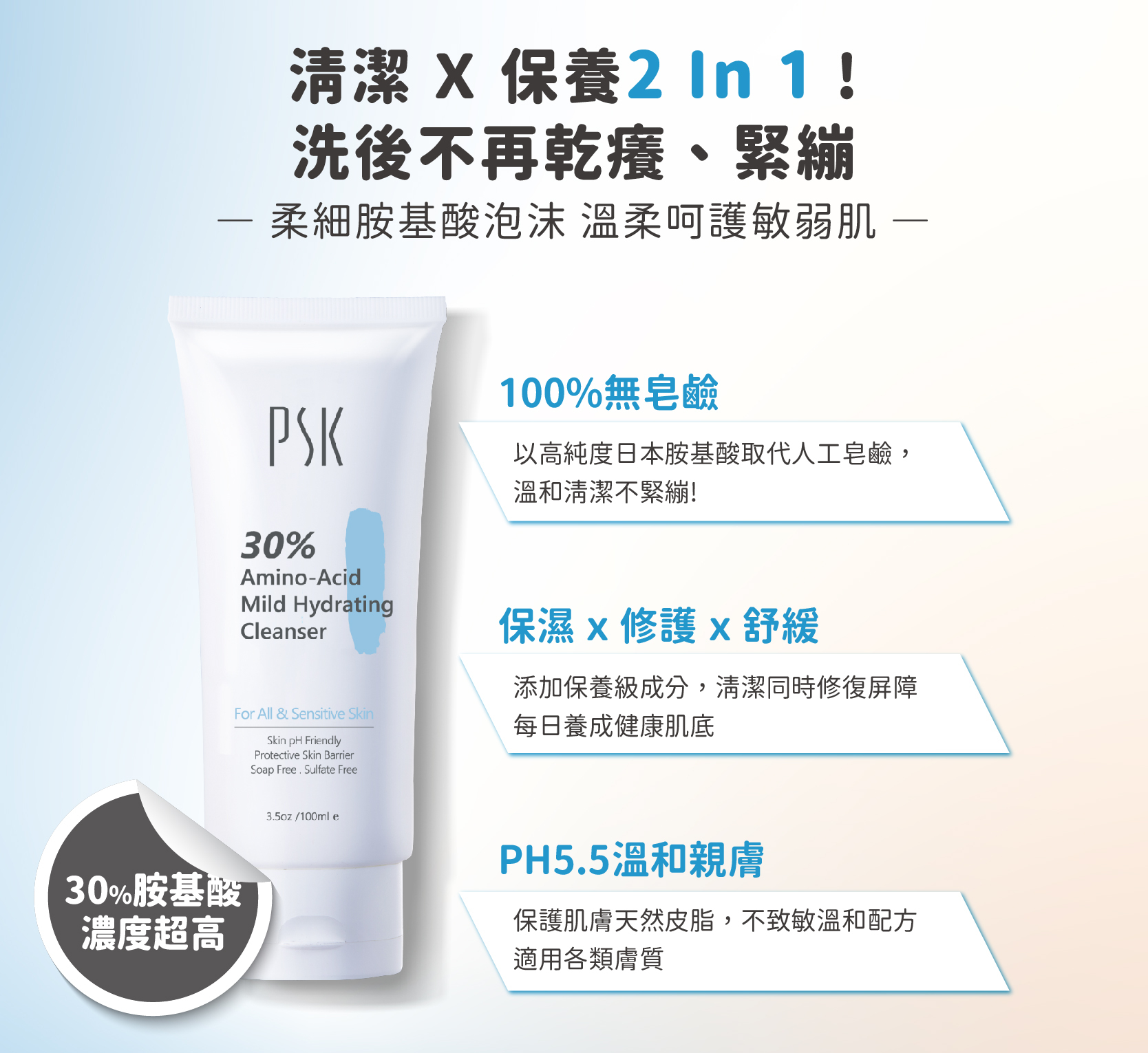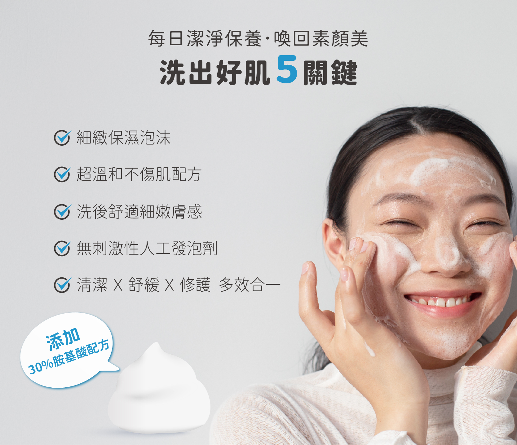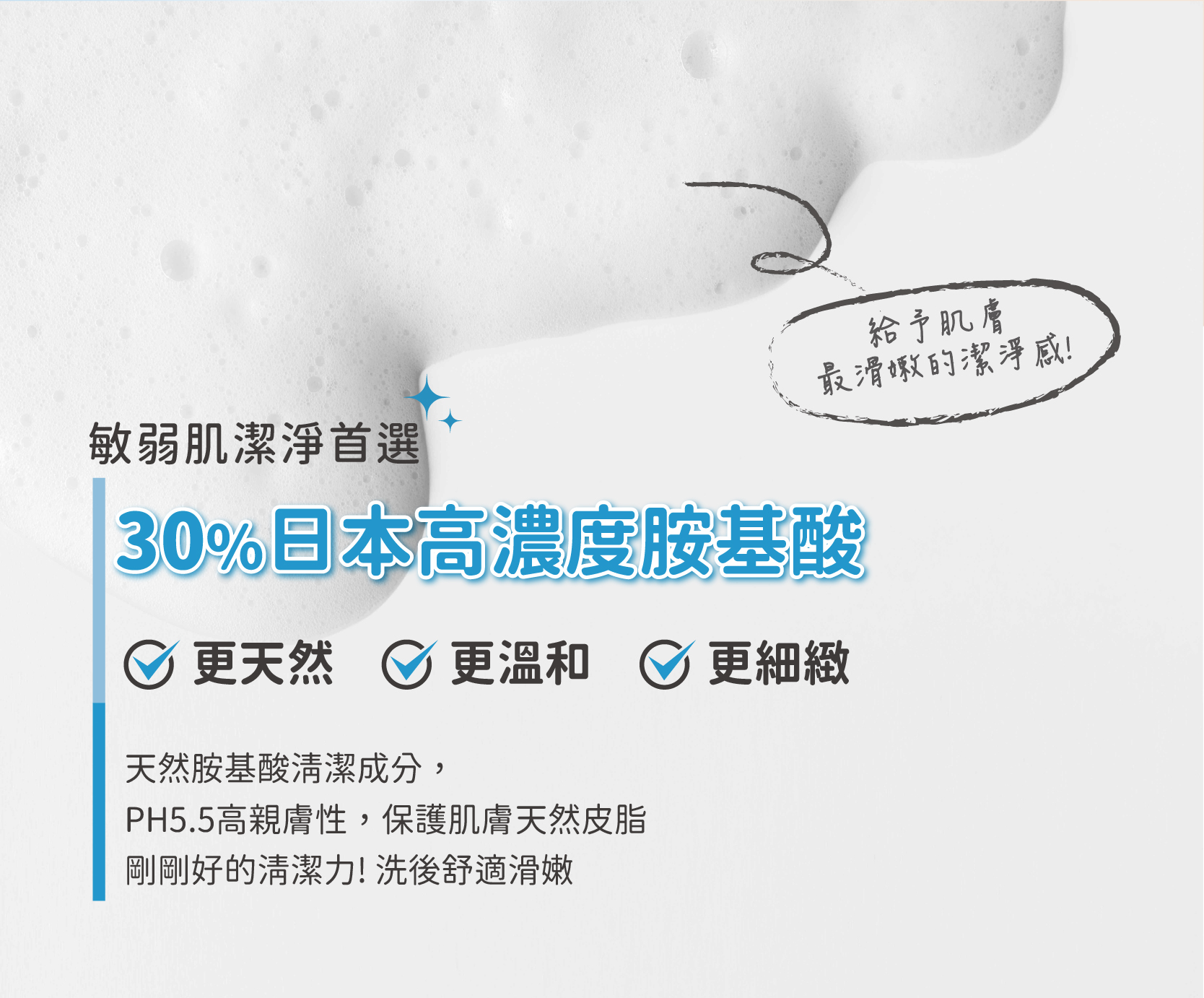 ☑30%日本高濃度胺基酸,洗後不乾澀緊繃,享受柔嫩膚感