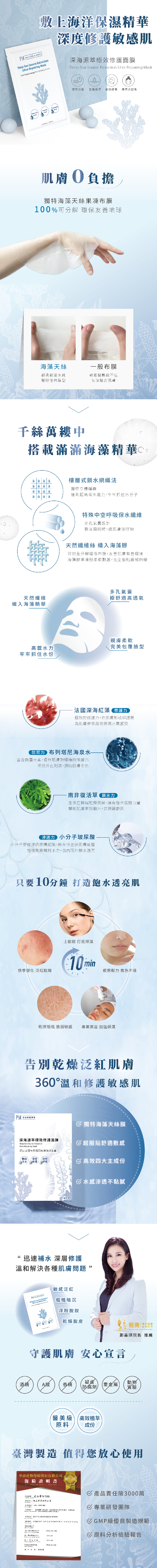 組合內容 - 深海源萃保濕柔膚水150ml+深海源萃保濕乳液80ml+深海源萃保濕舒妍精華34ml+深海源萃水潤舒芙霜30ml+深海源萃極效修護面膜2盒