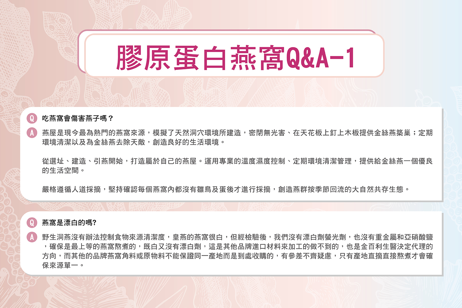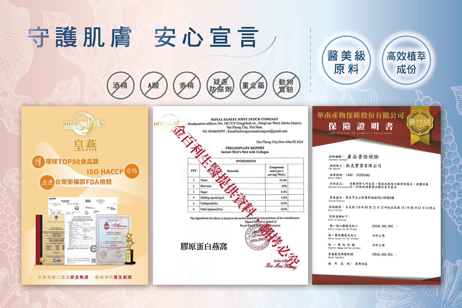 來自越南金絲燕,燕窩含高達 8.2% 唾液酸純度,搭配中藥複方、口感清爽無腥味
