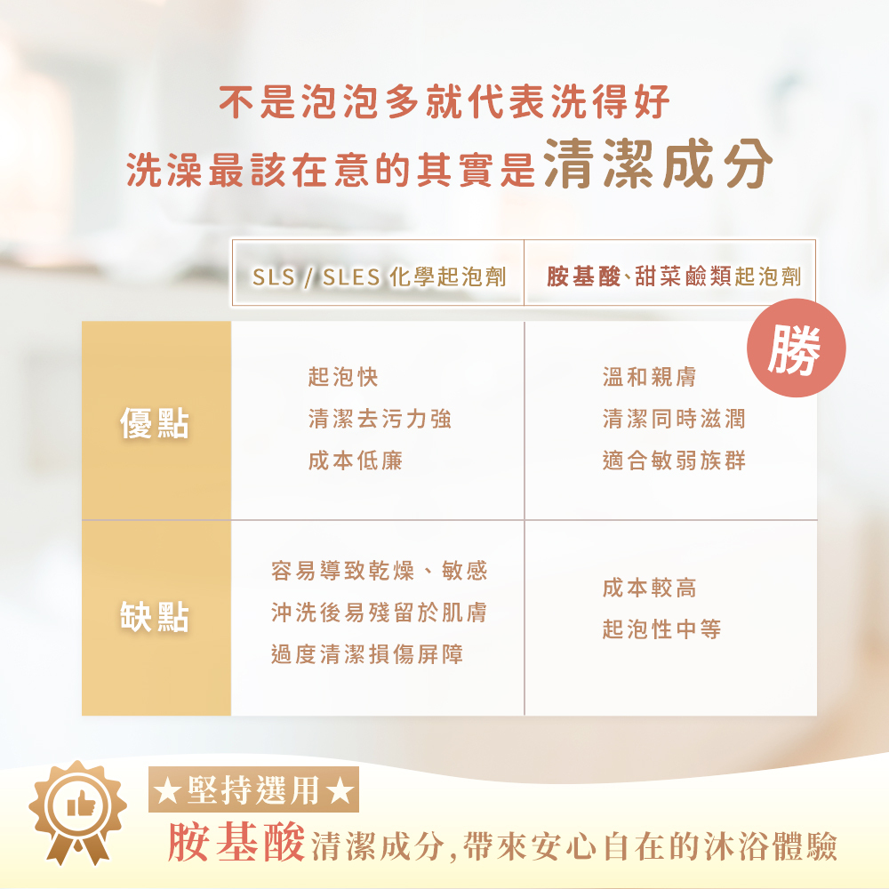 採用胺基酸溫和潔淨配方,清潔同時維持肌膚防護屏障