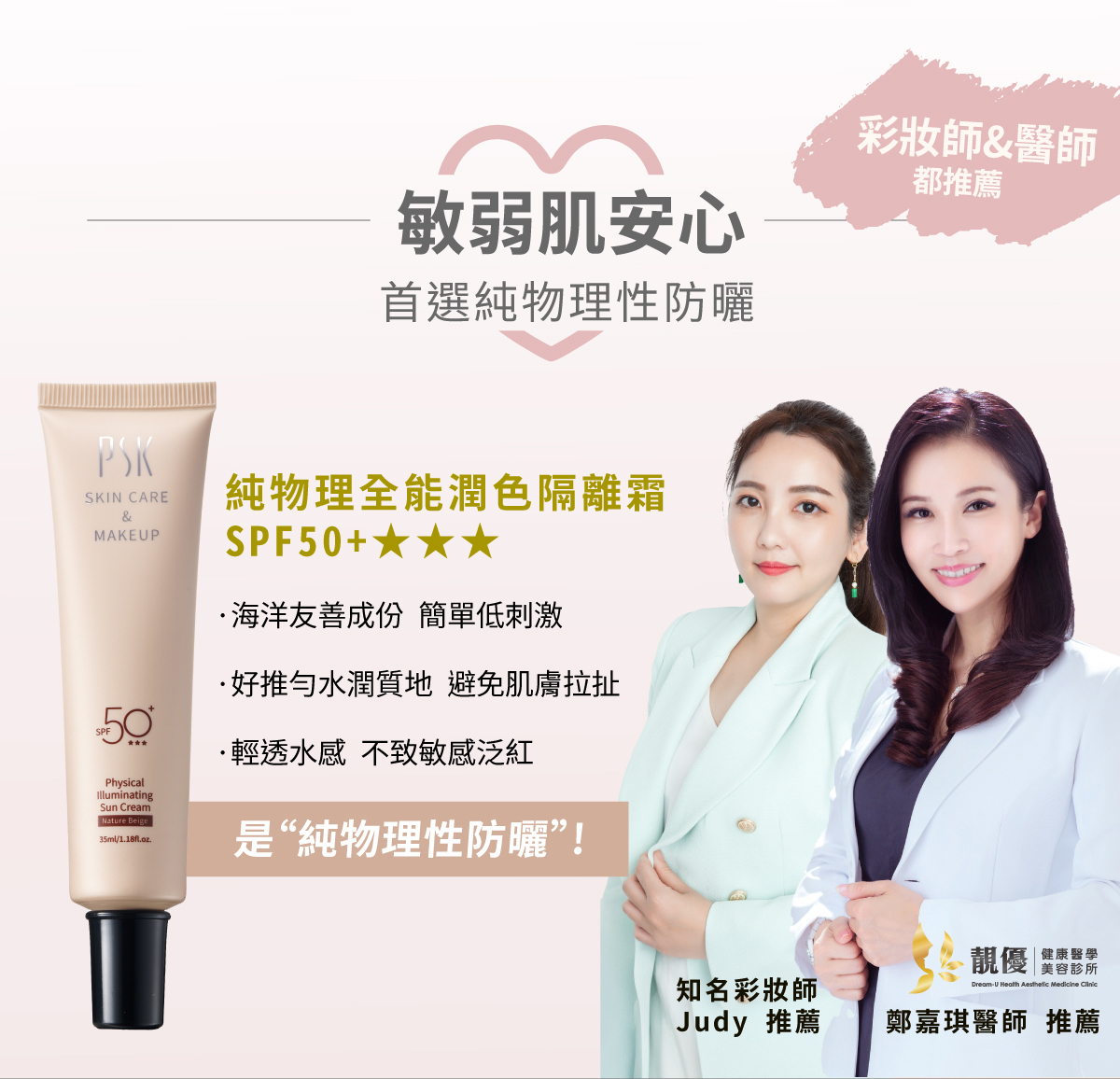 組合內容 - 純物理全能潤色隔離霜35ml (色號可任選) 或 純物理全能輕透防曬霜 任選3入