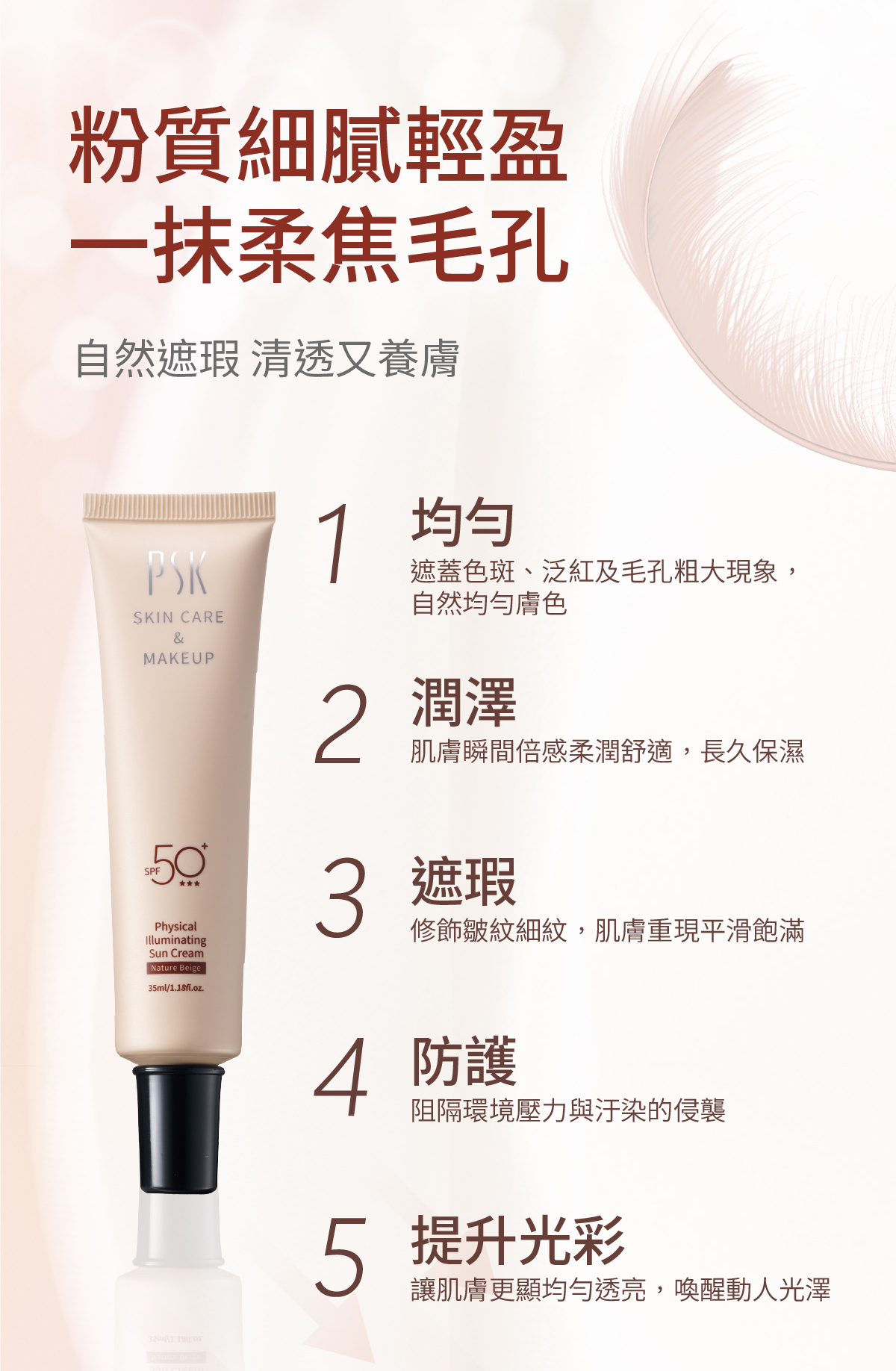 ◆純物理全能潤色隔離霜 SPF50+ ★★★ - 超輕透服貼,快速打造完美底妝!