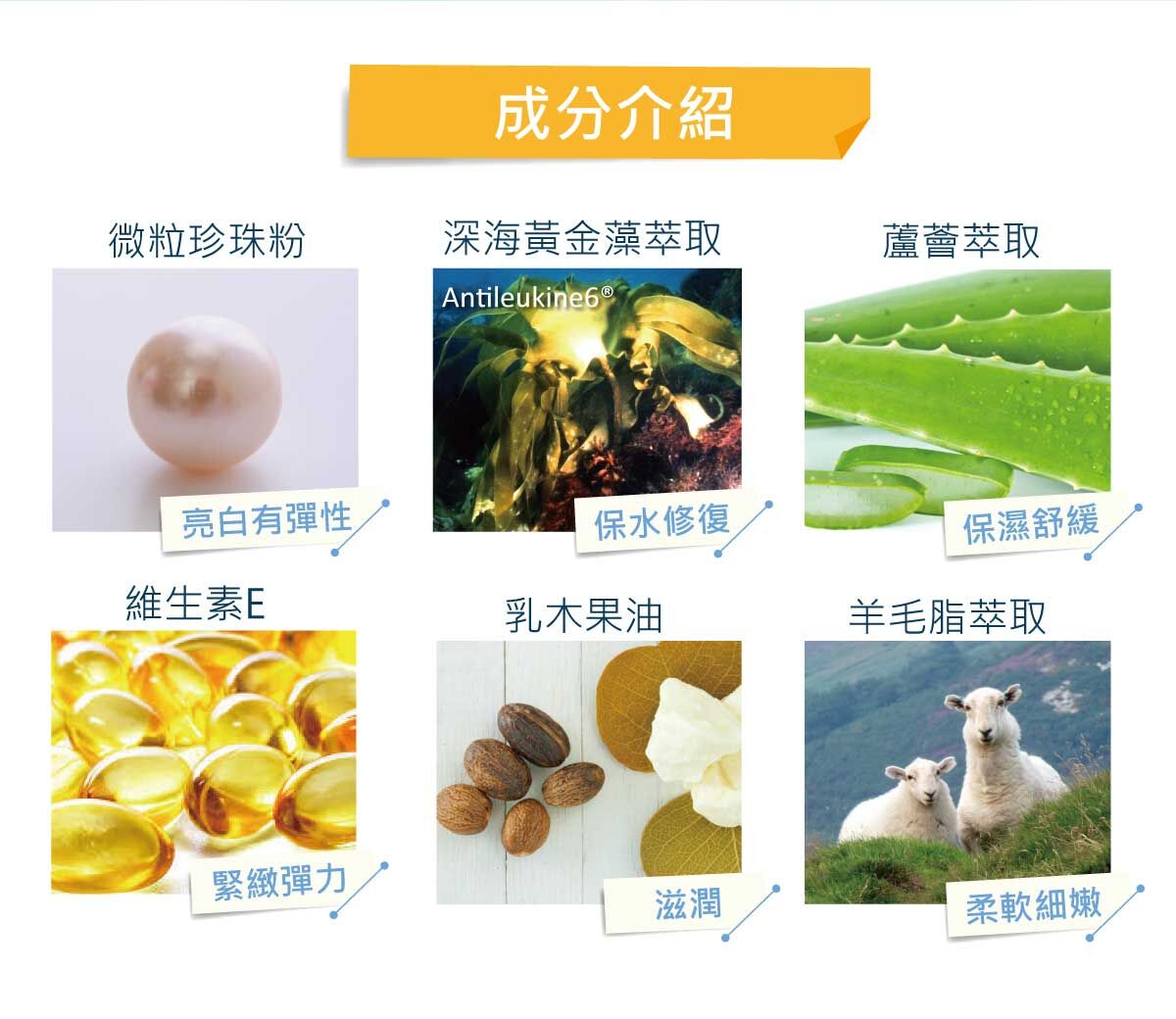 ◆添加黃金海藻,調節皮膚保濕保水度,加強修護