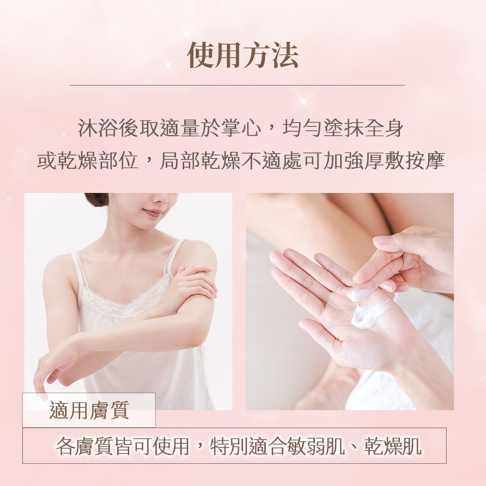 質地輕盈好吸收,保濕不黏膩,洗後塗抹立即感受柔滑觸感